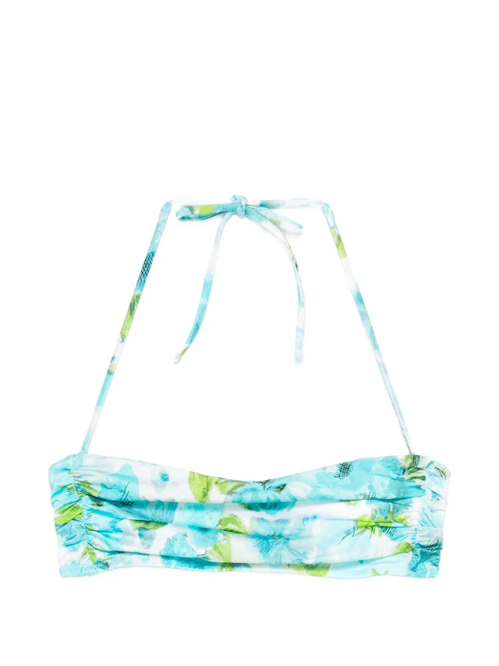 floral-print bikini top Highlights - White/blue/green - Floral print - Self-tie fastening - Gathered detail Made in Italy Composition Polyamide 80%, Elastane 20% Washing instructions Hand Wash