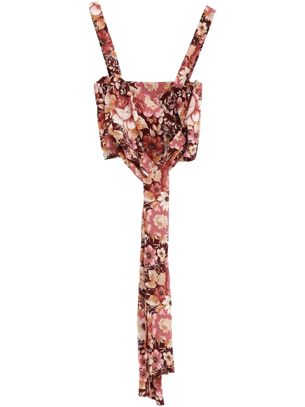 floral-print cropped top Highlights - Pink - All-over floral print - Sleeveless - Rear tie fastening Made in Italy Composition Organic Silk 100% SIZE & FIT Measurement LENGTH 16.14 in(41 cm)