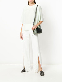 fluid trapeze blouse The Chloe collection is where boyish elegance meets romantic femininity. Founded in the 1950’s by Gaby Aghion, a true visionary who is credited as the pioneer of luxury pret-a-porter, the maison has a rich history defined by an enduring youthful spirit. White silk fluid trapeze blouse featuring a round neck, short sleeves and a trapeze body. Imported Composition Silk 100% SIZE & FIT Model measurements Height 5 ft 10 in(1.78 m) Bust/Chest 33.07 in(84 cm) Hips 35.82 in(91 cm) Waist 26.96 in(68.5 cm) Washing instructions Dry Clean Only