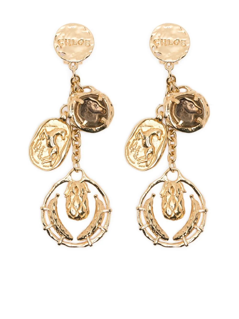 french-clip-fastening earrings Highlights - Gold-tone - French-clip fastening - Charm detail - Drop style - Chain detail - Normal everyday use and external agents may reduce the lustre of gemstones and gold surfaces. to maintain, use specific, non-abrasive products specially meant for cleaning jewellery. - This piece comes complete with a protective dust bag. Made in Italy SIZE & FIT Model measurements Height 5 ft 8 in(1.73 m) Bust/Chest 29.92 in(76 cm) Hips 33.07 in(84 cm) Waist 23.22 in(59 cm) Measurement HEIGHT 3.93 in(10 cm) WIDTH 1.18 in(3 cm)