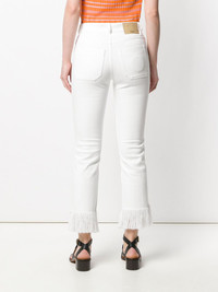fringe trimmed jeans Cut from white cotton for a strong summery feel, these fringe trimmed jeans from Chloe are your new season wardrobe staple. Featuring a mid rise, a waistband with belt loops, side pockets, two back patch pockets, a straight leg and a regular length. Imported Composition Lining: Polyester 65%, Cotton 35% Outer: Cotton 99%, Spandex/Elastane 1% SIZE & FIT Model measurements Height 5 ft 10 in(1.77 m) Bust/Chest 35.03 in(89 cm) Hips 35.03 in(89 cm) Waist 23.62 in(60 cm) Measurement FRONT RISE 10.23 in(26 cm) INSIDE LEG 27.95 in(71 cm) BACK RISE 13.38 in(34 cm) HIPS 36.22 in(92 cm) WAIST 30.7 in(78 cm) Washing instructions Dry Clean Only