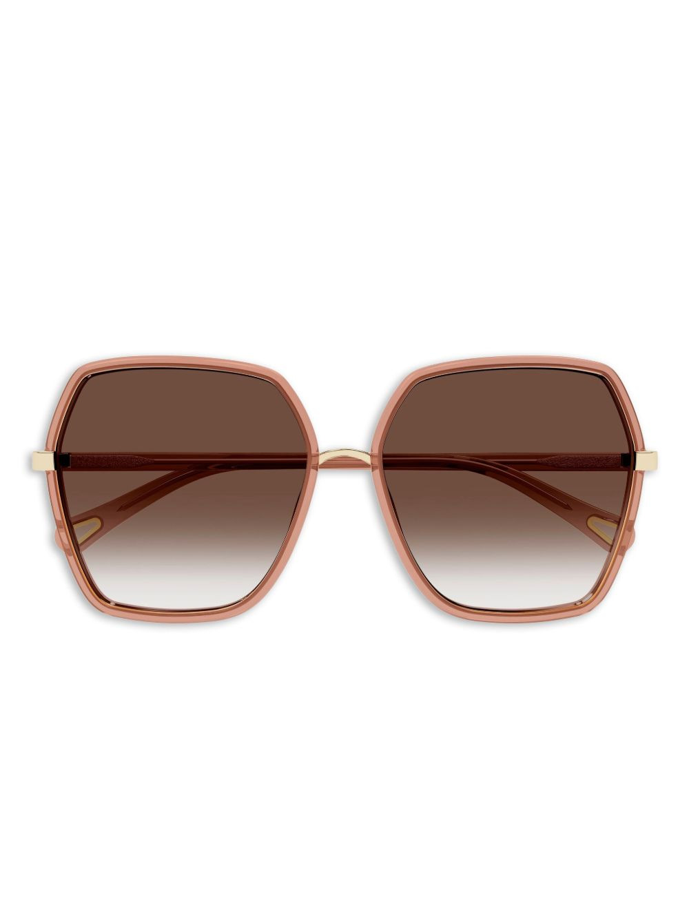 geometric CH0262S sunglasses Highlights - Light pink - Geometric frame - Gradient lenses - Nose pads - Logo detail at the temple - Gold-tone hardware - These glasses come with a protective case. Made in Italy Composition Acetate 100% SIZE & FIT Measurement Arm Length 5.51 in(14 cm) Bridge Width 0.62 in(1.6 cm) Lens Diameter 2.28 in(5.8 cm)