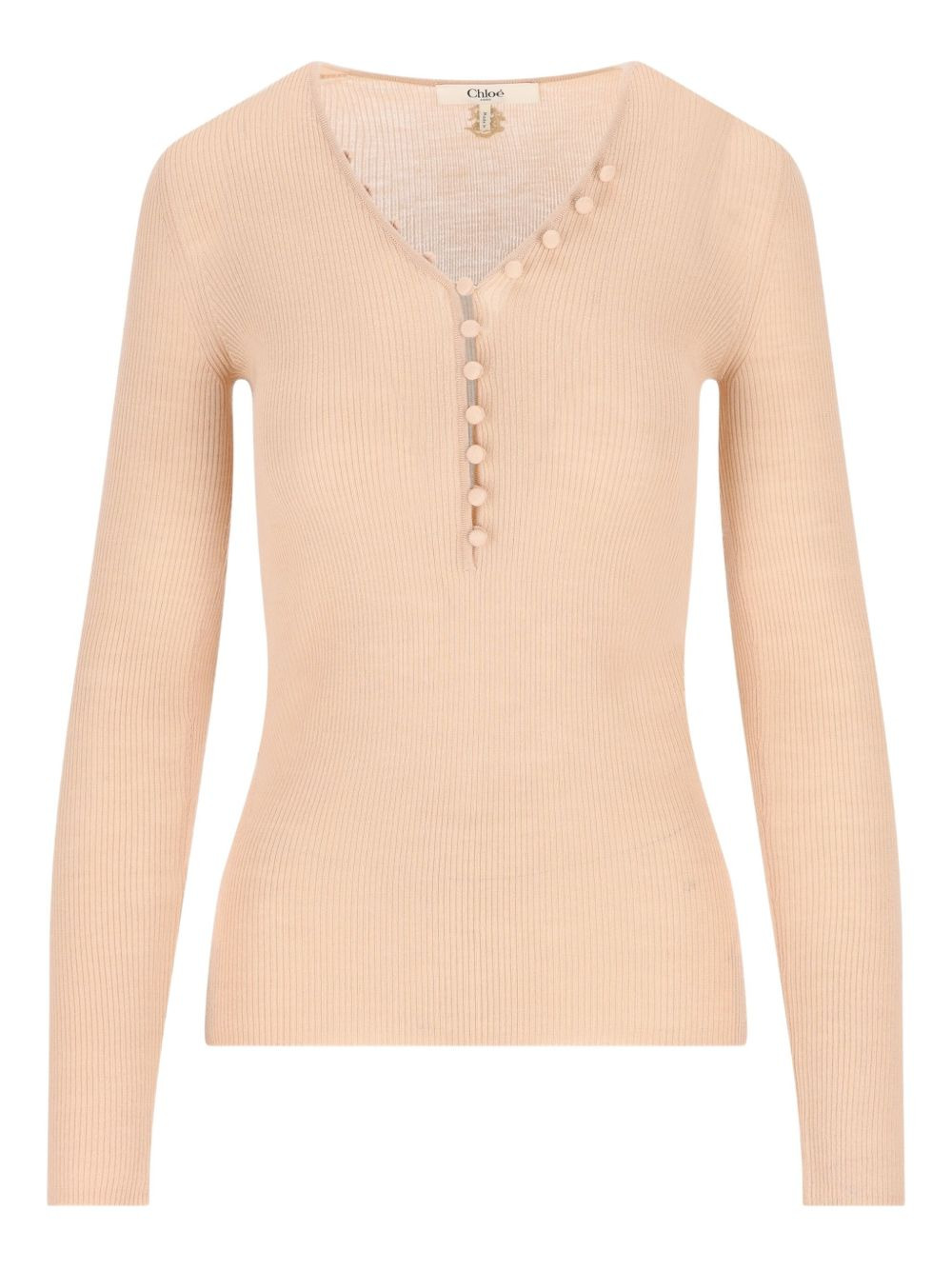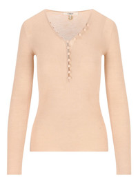 Henley ribbed button-front T-shirt Highlights - Pink - Ribbed knit - Button placket - Long sleeves - V-neck Imported Composition Merino 100% Washing instructions Read Manufacturer Guidelines