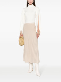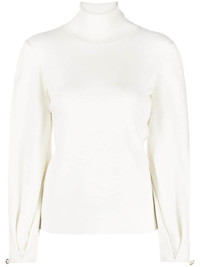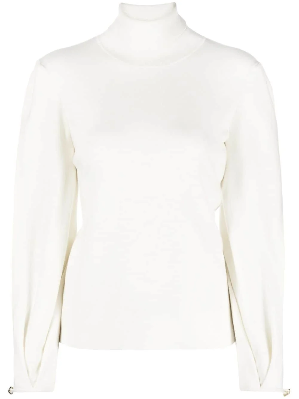 high-neck fine-knit jumper Highlights - Milk - Wool blend - Fine knit - High neck - Long puff sleeves - Straight hem Imported Composition Wool 88%, Polyamide 8%, Elastane 4% Washing instructions Dry Clean Only