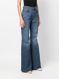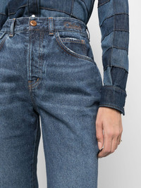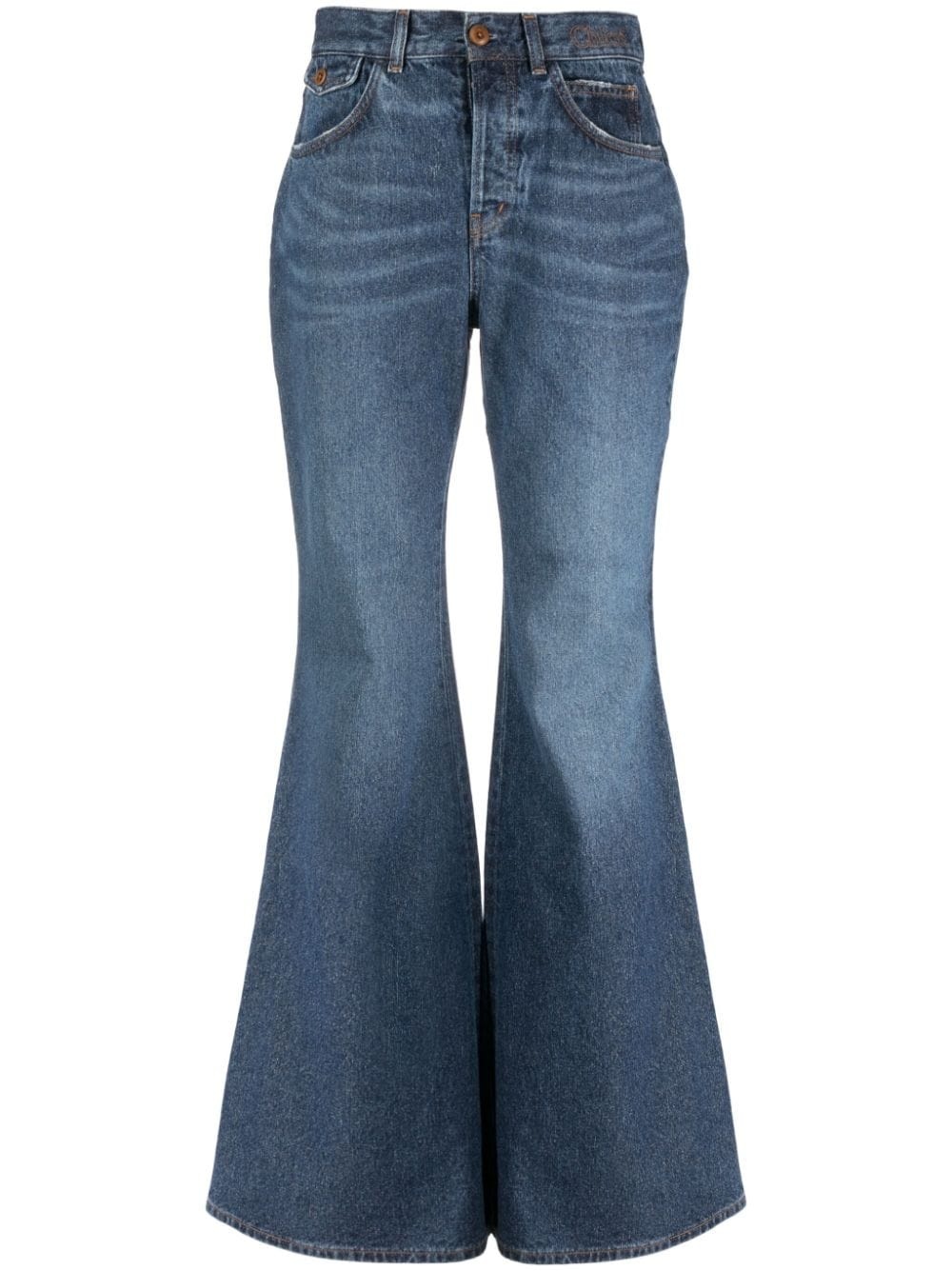 high-rise flared jeans Highlights - Cerulean blue - Cotton - Washed denim - Flared design - Whiskering effect - High waist - Belt loops - Concealed fly and button fastening - Classic five pockets Made in Italy Composition Lining: Cotton 100% Outer: Cotton 87%, Hemp 13% SIZE & FIT Model measurements Height 5 ft 9 in(1.75 m) Bust/Chest 33.07 in(84 cm) Hips 35.03 in(89 cm) Waist 24.01 in(61 cm) Measurement FRONT RISE 11.41 in(29 cm) HIPS 38.97 in(99 cm) FittingInformation Designed with a flared hem, these jeans allow for a close fit at the waist with a slim fit over the leg and widening towards the hem Sturdy and hard-wearing, this denim piece offers no stretch This piece fits true to size – take your usual size Washing instructions Machine Wash