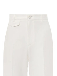 high-waisted flared trousers Highlights - Off-white - High waist - Flared legs - Button fly - Side pockets - Fit Imported Composition Cotton 100%, Buffalo Horn 100%