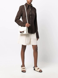 Katie leather shoulder bag cream/brown/black leather debossed logo to the front foldover top single shoulder strap main compartment internal slip pocket Made in Italy Composition Outer: Calf Leather 100% SIZE & FIT Model measurements Height 5 ft 10 in(1.79 m) Bust/Chest 33.07 in(84 cm) Hips 35.03 in(89 cm) Waist 24.4 in(62 cm) Measurement DEPTH 2.75 in(7 cm) HEIGHT 5.9 in(15 cm) STRAP 26.37 in(67 cm) WIDTH 7.48 in(19 cm)