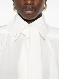 lace-collar shirt Highlights - White - Self-tie fastening - Buttoned cuffs - Floral lace collar - Long sleeves Imported Composition Silk 100% SIZE & FIT Model measurements Height 5 ft 10 in(1.77 m) Bust/Chest 32.28 in(82 cm) Hips 35.03 in(89 cm) Waist 25.19 in(64 cm) Washing instructions Read Manufacturer Guidelines