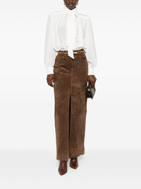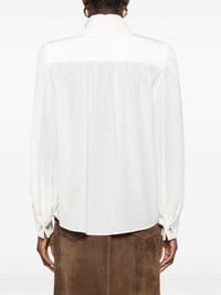 GATHERED SCARF-TIE BLOUSE IN CRÊPE DE CHINE & LACE