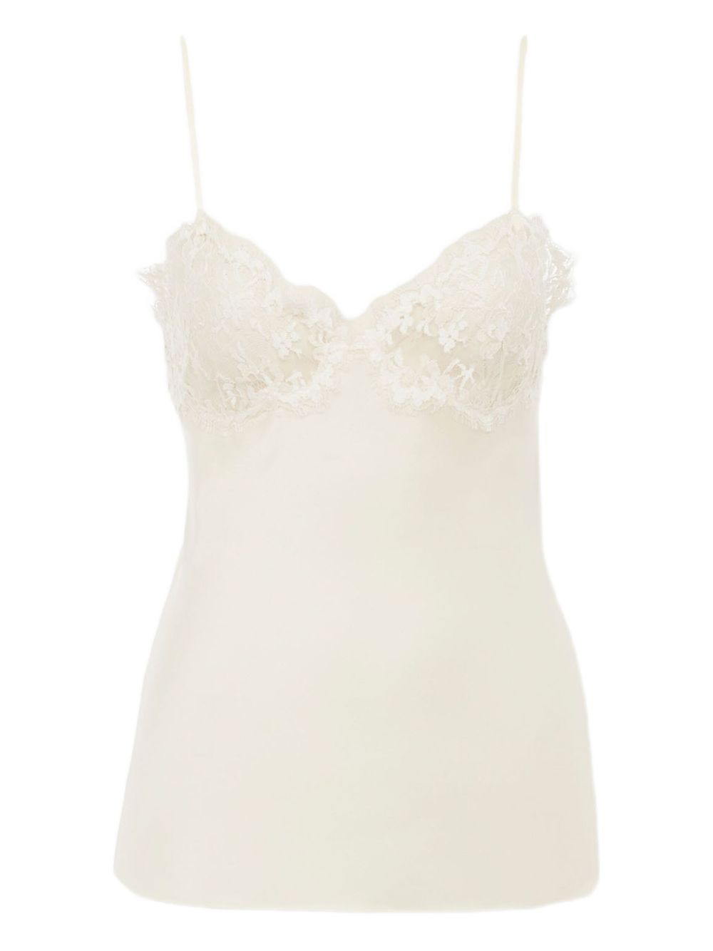 lace-detail top Highlights - White - Lace detail - Thin straps Made in Italy Composition Polyester 100%, Silk 100%, Cotton 56%, Polyamide 44% Washing instructions Read Manufacturer Guidelines