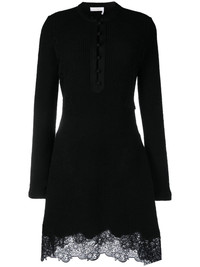 lace-panel knitted mini dress Highlights - Black - Virgin wool/cotton - Ribbed-knit jersey - Round neck - Button fastening - Lace panelling - Lace trim - Bell sleeves - Above-knee length Made in Italy Composition Virgin Wool 100%, Cotton 100%, Polyester 100% SIZE & FIT Model measurements Height 5 ft 10 in(1.79 m) Bust/Chest 31.49 in(80 cm) Hips 35.03 in(89 cm) Waist 23.62 in(60 cm) FittingInformation This piece fits true to size. We recommend you get your regular size Designed for a close fit at the bust, waist and hips Made with a mid-weight fabric Washing instructions Dry Clean Only