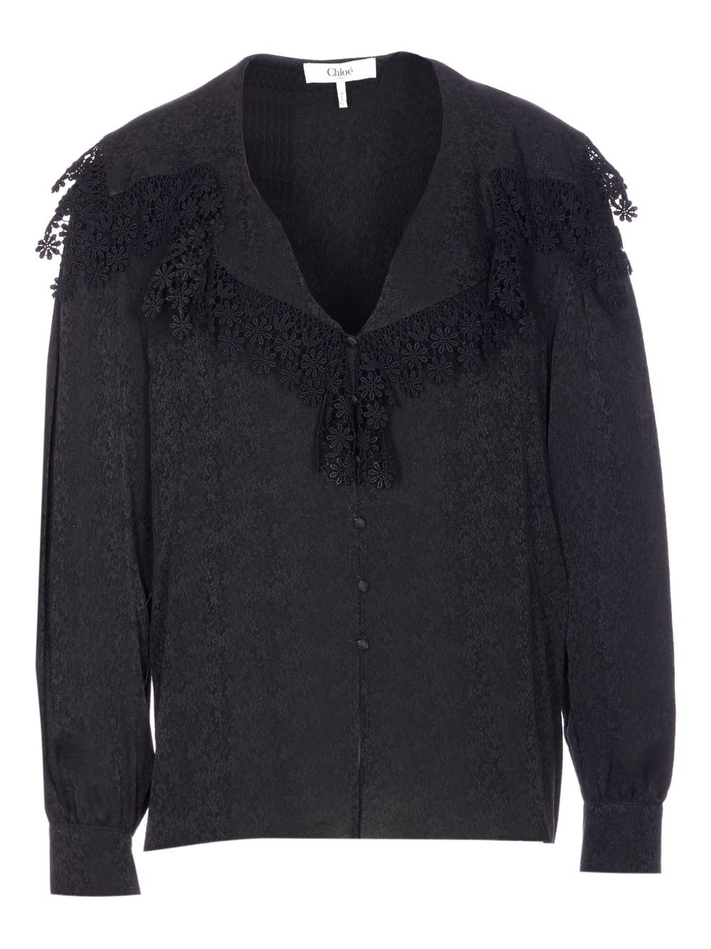 lace-trim long-sleeve blouse Highlights - Black - Floral pattern - Lace trim - V-neck - Front button fastening - Long sleeves Imported Composition Silk 100%