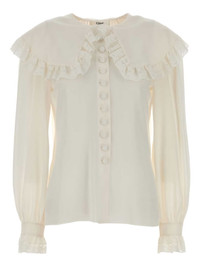 lace-trimmed blouse Highlights - White - Lace trim - Button fastening - Buttoned cuffs - Long sleeves Made in Italy Composition Silk 100% Washing instructions Read Manufacturer Guidelines