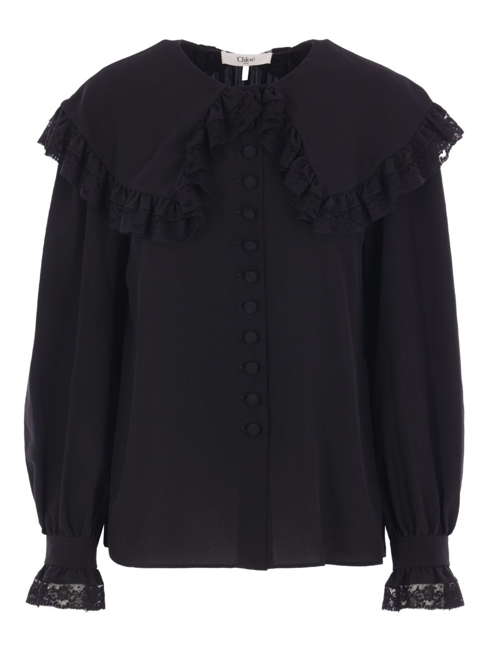 lace-trimmed ruffled top Highlights Made in Italy Composition Silk 100%, Cotton 90%, Polyamide 10%