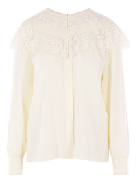 lace-trimmed silk top Highlights - Pristine white - Silk outer shell - Lace collar - Long sleeves - Button fastening - Detailed-lace trim Imported Composition Polyester 100%, Silk 100% Washing instructions Read Manufacturer Guidelines