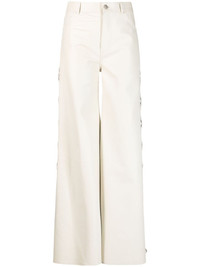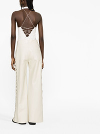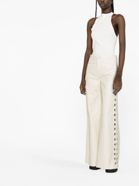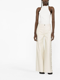 lace-up leather trousers These trousers from Chloe are crafted from leather and boast a wide-leg silhouette that is complete with lace-up detailing that runs down the side of the design. Highlights - White - Lambskin - Lace-up detailing - Belt loops - Button fly fastening - Two rear patch pockets Made in Italy Composition Outer: Lamb Skin 100% Lining: Silk 100% SIZE & FIT Model measurements Height 5 ft 10 in(1.79 m) Bust/Chest 31.1 in(79 cm) Hips 35.03 in(89 cm) Waist 24.01 in(61 cm) FittingInformation Designed with a wide-leg cut, these trousers allow for a close fit at the waist and offer a loose and roomy fit over the leg Firm leather offering little flexibility to maintain its durability and sturdiness This piece fits true to size – those with curvy hips may wish to take one size up