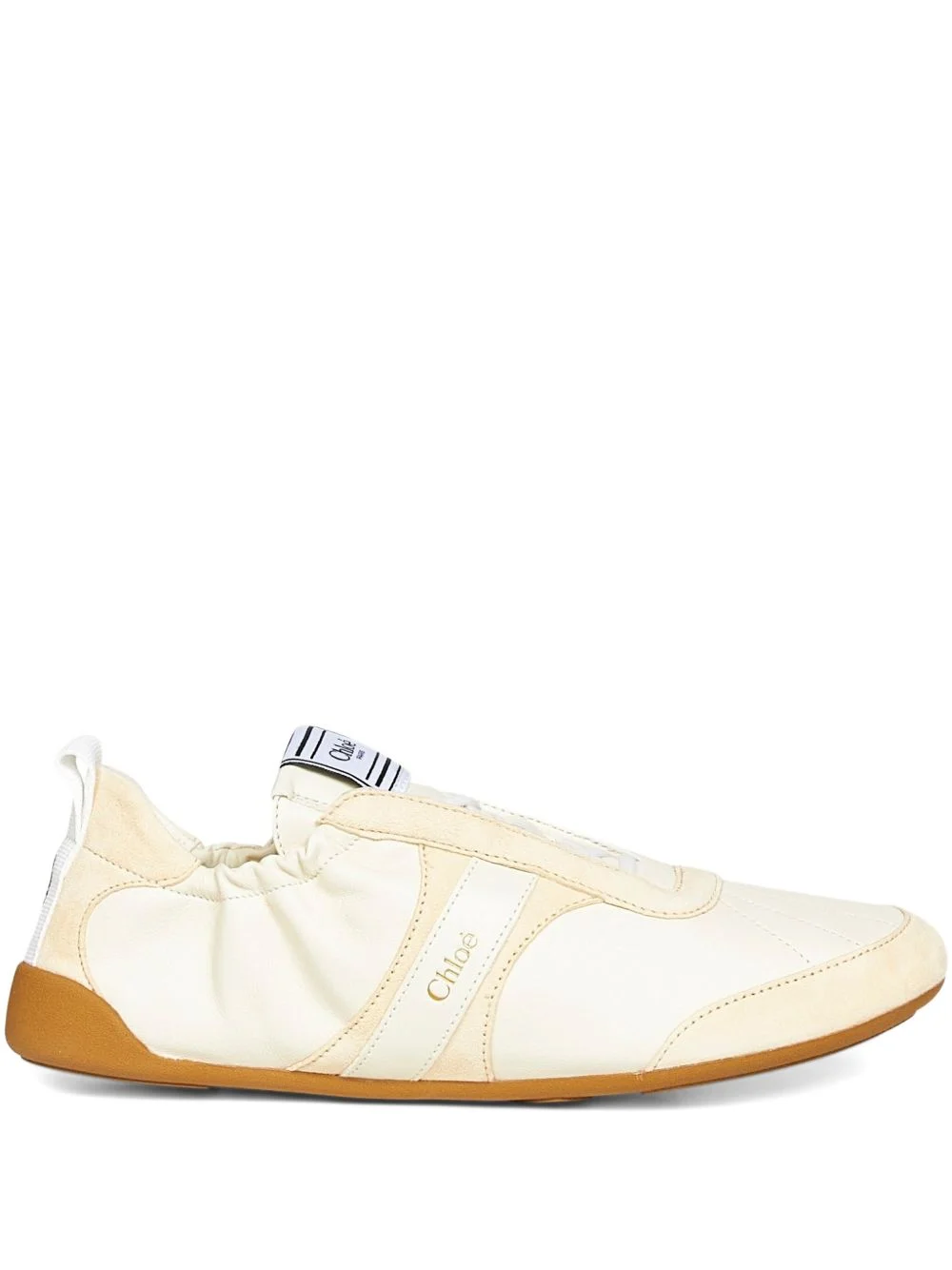 lace-up logo sneakers Highlights - Beige - Leather upper - Suede inserts - Elasticated-ankle - Grosgrain heel loop-tab - Recycled rubber-sole - Lace-up fastening Imported Composition Outer: Calf Leather 100%, Calf Suede 100% Sole: Recycled Rubber 100% Lining: Polyester 80%, Polyurethane 20%