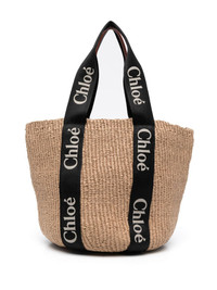 large Woody tote bag Highlights - Beige/black - Paper raffia/linen - Leather trim - Interwoven design - Logo-tape detailing - Two top handles - Open top - Main compartment - Internal logo patch - Logo-debossed leather panel at the base - This piece comes complete with a protective dust bag. Imported Composition Outer: Paper 100%, Calf Leather 100%, Polyester 100% Lining: Linen/Flax 100% SIZE & FIT Model measurements Height 5 ft 11 in(1.8 m) Bust/Chest 33.07 in(84 cm) Hips 37.4 in(95 cm) Waist 25.19 in(64 cm) Measurement DEPTH 9.84 in(25 cm) HEIGHT 11.41 in(29 cm) WIDTH 13.77 in(35 cm)