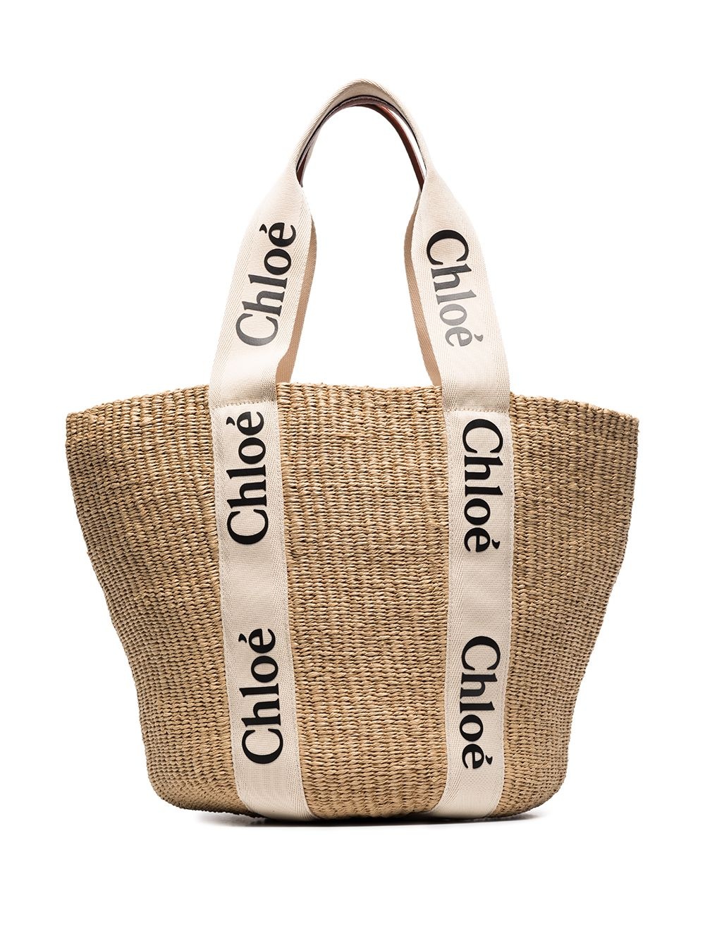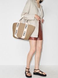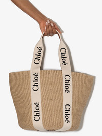 large Woody logo-strap tote bag Crafted in a basket shape for an easy-going summer style, this large Woody basket is made from upcycled materials by independent craftswomen in Kenya. The iconic Woody's ribbon creates a graphic contrast with the natural fibre, whilst the roomy interior adds a much-needed functionality. Highlights - Beige - Paper - Woven wicker design - Signature woody ribbon - Open top - Logo-embellished shoulder strap - Main compartment Imported Composition Lining: Calf Leather 100%, Paper 100% Outer: Paper 100%, Polypropylene 100% SIZE & FIT Model measurements Height 5 ft 10 in(1.79 m) Bust/Chest 31.88 in(81 cm) Hips 35.43 in(90 cm) Waist 23.62 in(60 cm) Measurement DEPTH 10.23 in(26 cm) HEIGHT 10.62 in(27 cm) STRAP 8.66 in(22 cm) WIDTH 10.23 in(26 cm)