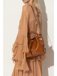leather bucket bag Highlights - Brown - Calf leather - Smooth grain - Gold-tone hardware - Drawstring fastening - Single twisted top handle - Adjustable shoulder strap - Main compartment Made in Italy Composition Outer: Calf Leather 100% Lining: Calf Leather 100% SIZE & FIT Measurement DEPTH 5.9 in(15 cm) HANDLE 3.74 in(9.5 cm) HEIGHT 9.44 in(24 cm) STRAP 19.68 in(50 cm) WIDTH 10.23 in(26 cm)