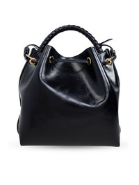 leather bucket bag Highlights - Black - Calf leather - Smooth grain - Gold-tone hardware - Drawstring fastening - Single twisted top handle - Adjustable shoulder strap - Main compartment Made in Italy Composition Outer: Calf Leather 100% Lining: Calf Leather 100% SIZE & FIT Measurement DEPTH 5.9 in(15 cm) HANDLE 3.74 in(9.5 cm) HEIGHT 9.44 in(24 cm) STRAP 19.68 in(50 cm) WIDTH 10.23 in(26 cm)