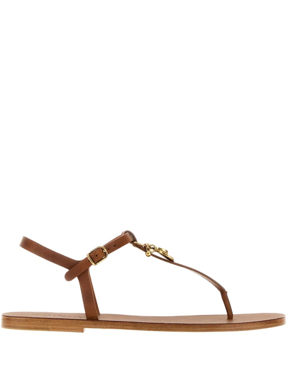leather charm sandals Highlights - Brown - Leather - Ankle strap - Buckle fastening - Charm detail - Thong style Imported Composition Sole: Leather 100% Lining: Calf Leather 100% Outer: Calf Leather 100%