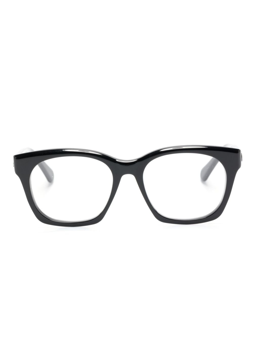 logo-embossed square-frame glasses Highlights - Black - Acetate - Square frame - Clear lenses - Gold-tone logo-embossed arm - Straight arms with curved tips - These glasses come with a protective case. - All glasses from farfetch are sold as non-prescription frames. Made in Italy Composition Acetate 100% SIZE & FIT Measurement Arm Length 5.51 in(14 cm) Bridge Width 0.66 in(1.7 cm) Lens Diameter 2.04 in(5.2 cm) Total Width 5.43 in(13.8 cm)