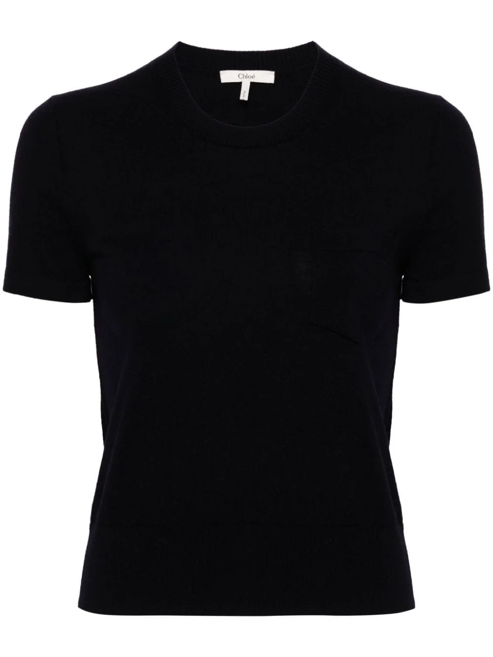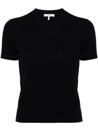 logo-embroidered wool top Highlights - Navy blue - Wool - Fine knit - Embroidered logo at the chest - Crew neck - Short sleeves - Ribbed cuffs and hem - Straight hem Imported Composition Lining: Wool 100%, Polyester 100% Outer: Wool 100% Washing instructions Machine Wash