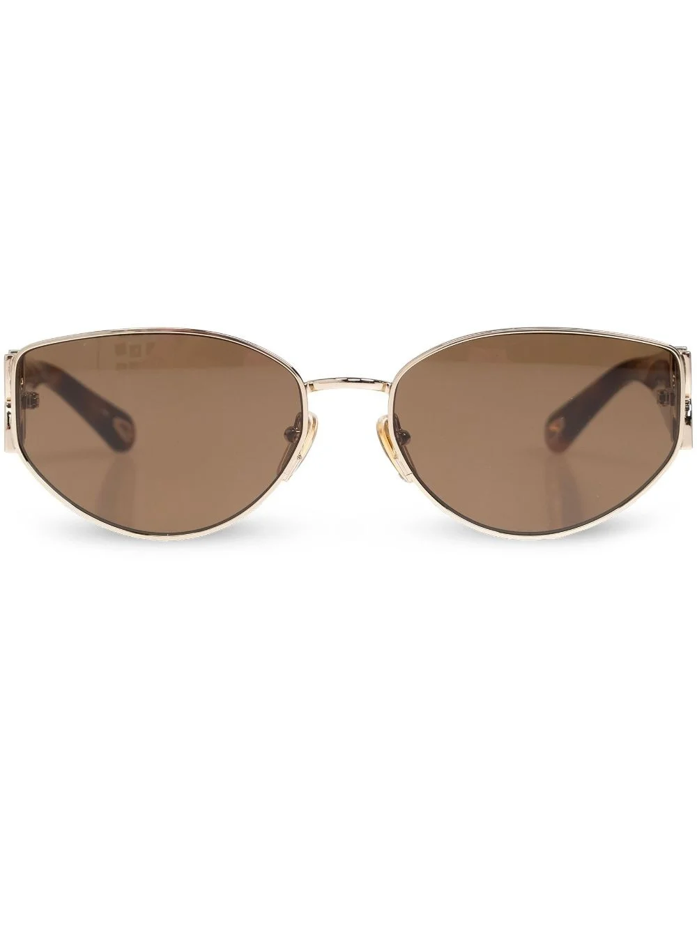 logo-engraved oval-lens sunglasses Highlights - Brown/gold tones - Acetate - Oval frame - Brown tinted lenses - Nose pads - Logo-engraved arm - Signature gold-tone metal hinge detail - These glasses come with a protective case. Imported Composition Acetate 100%, Metal 100% SIZE & FIT Measurement Arm Length 5.31 in(13.5 cm) Bridge Width 0.66 in(1.7 cm) Lens Diameter 2.32 in(5.9 cm) Total Width 5.51 in(14 cm)