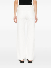 low-rise flared jeans Highlights - White - Cotton-hemp blend - Denim - Decorative gold-tone buckle to the rear - Belt loops - Classic five pockets - Tonal stitching - Boyfriend cut - Front button and zip fastening Made in Italy Composition Cotton 87%, Hemp 13% SIZE & FIT Model measurements Height 5 ft 11 in(1.8 m) Bust/Chest 31.49 in(80 cm) Hips 36.22 in(92 cm) Waist 25.59 in(65 cm) Measurement FRONT RISE 11.41 in(29 cm) HIPS 37 in(94 cm) WAIST 27.55 in(70 cm) FittingInformation Designed for a straight-leg fit, these jeans allow for a close fit at the waist and an unrestricted and comfortable fit over the leg Constructed from stretch denim, this piece offers a stretch fit with durability This piece fits true to size – take your usual size Measurement FRONT RISE 11.02 in(28 cm) HIPS 36.22 in(92 cm) WAIST 26.77 in(68 cm) Washing instructions Machine Wash
