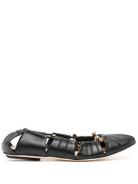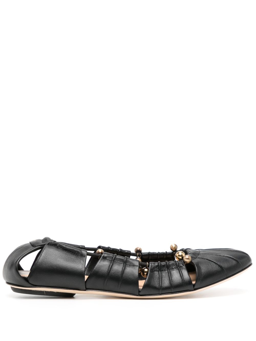 Luna cut-out embellished gathered leather ballet flats Black