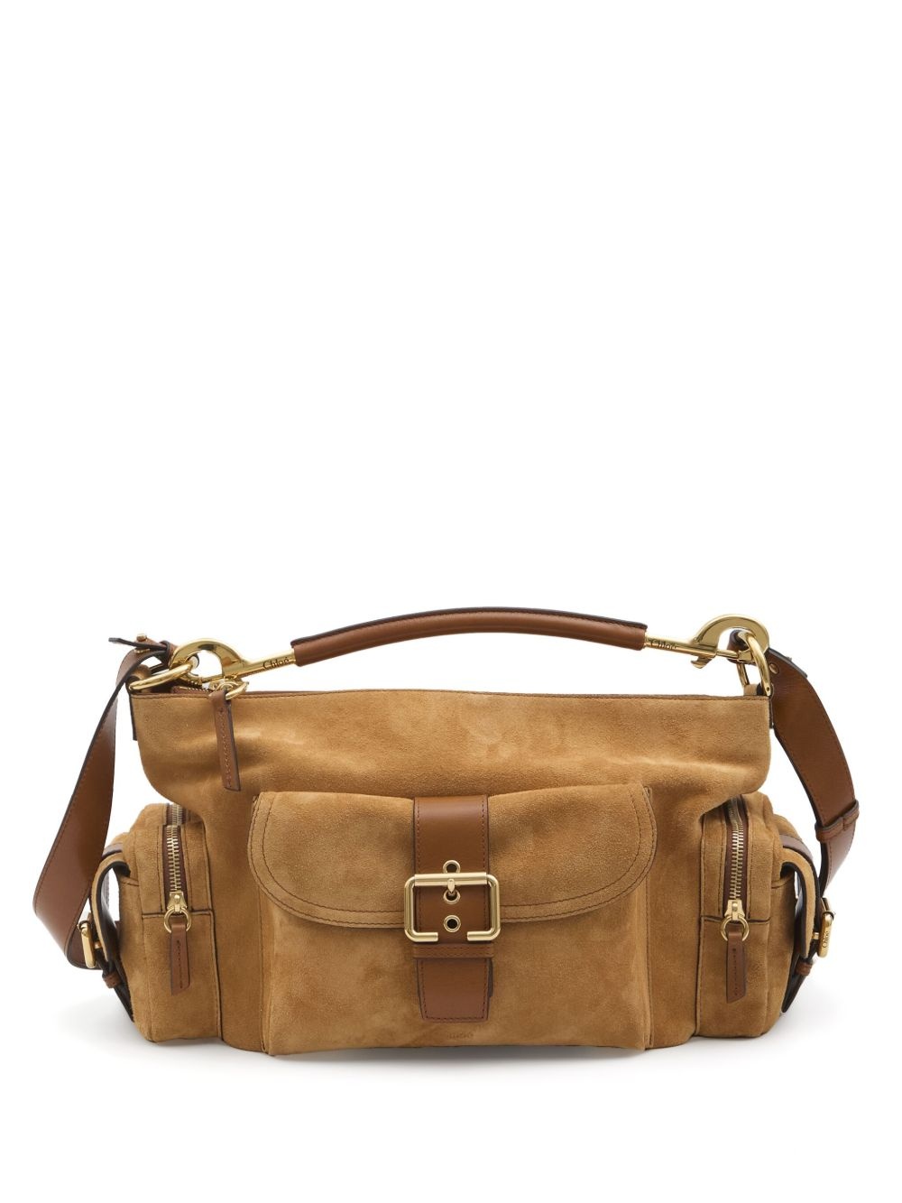 medium Camera bag Highlights - Brown - Top zip fastening - Single detachable top handle - Detachable shoulder strap - This piece comes complete with a protective dust bag. Made in Italy Composition Outer: Buffalo Leather 100%, Calf Suede 100% Lining: Cotton 55%, Linen/Flax 45% SIZE & FIT Measurement DEPTH 5.9 in(15 cm) HEIGHT 6.49 in(16.5 cm) WIDTH 13.38 in(34 cm)