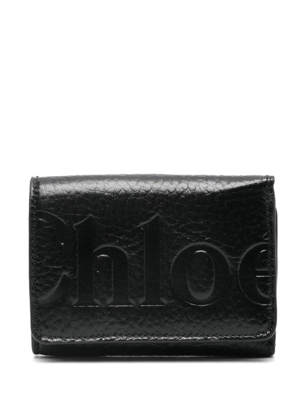 mini tri-fold wallet Highlights - Black - Calf leather - Pebbled texture - Tri-fold design - Press-stud fastening - Debossed logo to the front - Coin pocket - Internal note compartments - Three internal card slots - Internal logo stamp Imported Composition Outer: Calf Leather 100% Lining: Calf Leather 100%, Lamb Skin 100%, Polyester 65%, Cotton 35% SIZE & FIT Measurement DEPTH 0.78 in(2 cm) HEIGHT 2.75 in(7 cm) WIDTH 3.93 in(10 cm)
