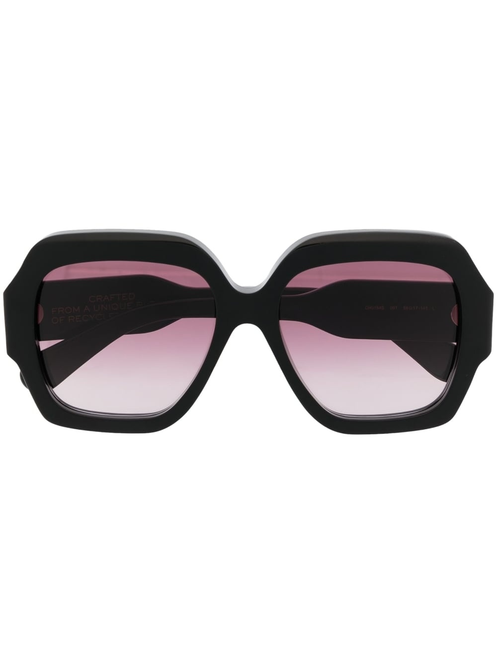 oversize square-frame sunglasses black acetate gradient lenses gold-tone logo lettering oversize square frame straight arms curved tips These glasses come with a protective case. Made in Italy Composition Acetate 100% SIZE & FIT Measurement Arm Length 5.7 in(14.5 cm) Bridge Width 0.66 in(1.7 cm) Lens Diameter 2.2 in(5.6 cm) Total Width 5.86 in(14.9 cm)