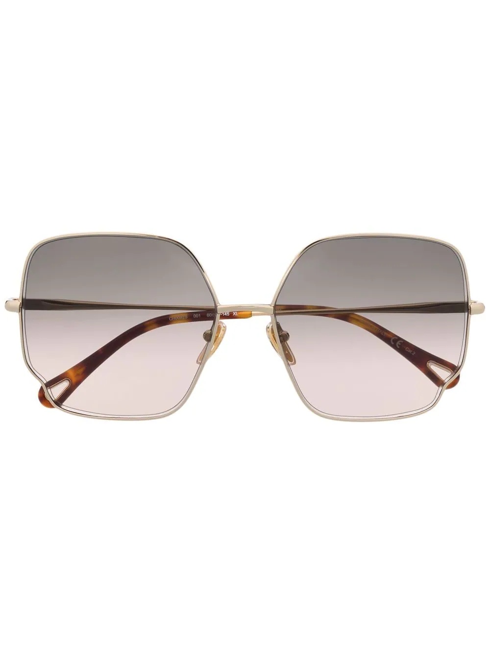 oversized-frame sunglasses gold-tone brass logo-engraved arm oversize frame gradient lenses straight arms curved tips These glasses come with a protective case. Made in Italy Composition Brass 100% SIZE & FIT Measurement Arm Length 5.7 in(14.5 cm) Bridge Width 0.62 in(1.6 cm) Lens Diameter 2.36 in(6 cm) Total Width 5.9 in(15 cm)