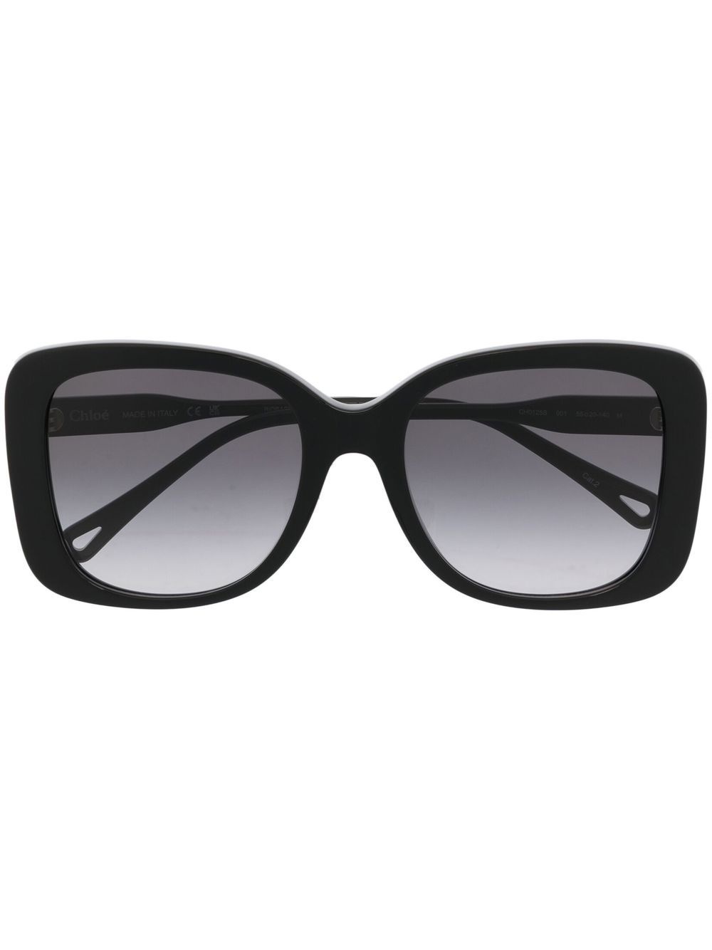oversized square-frame sunglasses black acetate oversize frame tinted lenses gold-tone logo lettering sculpted arms curved tips These glasses come with a protective case. Made in Italy Composition Acetate 100% SIZE & FIT Measurement Arm Length 5.51 in(14 cm) Bridge Width 0.78 in(2 cm) Lens Diameter 2.16 in(5.5 cm) Total Width 5.78 in(14.7 cm)