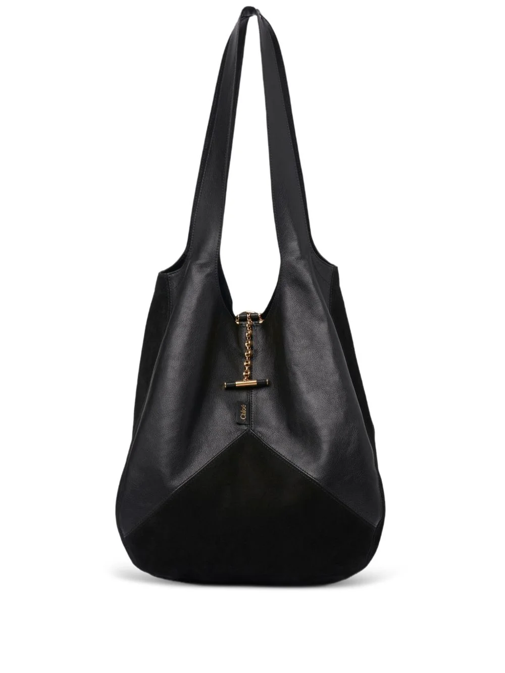 panelled chain shoulder bag Highlights - Black - Leather - Gold-tone hardware - Top handle Imported Composition Outer: Leather 100%