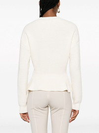 peplum-hem ribbed-knit jumper Highlights - Milk white - Wool - Chunky ribbed knit - Mock neck - Drop shoulder - Long sleeves - Peplum hem Made in Italy Composition Wool 100% SIZE & FIT Model measurements Height 5 ft 11 in(1.8 m) Bust/Chest 31.49 in(80 cm) Hips 36.61 in(93 cm) Waist 24.4 in(62 cm) FittingInformation Designed for a slim fit that sits just away from the body offering a close yet comfortable fit Made with a midweight knit, this piece offers some stretch This piece fits true to size – take your usual size