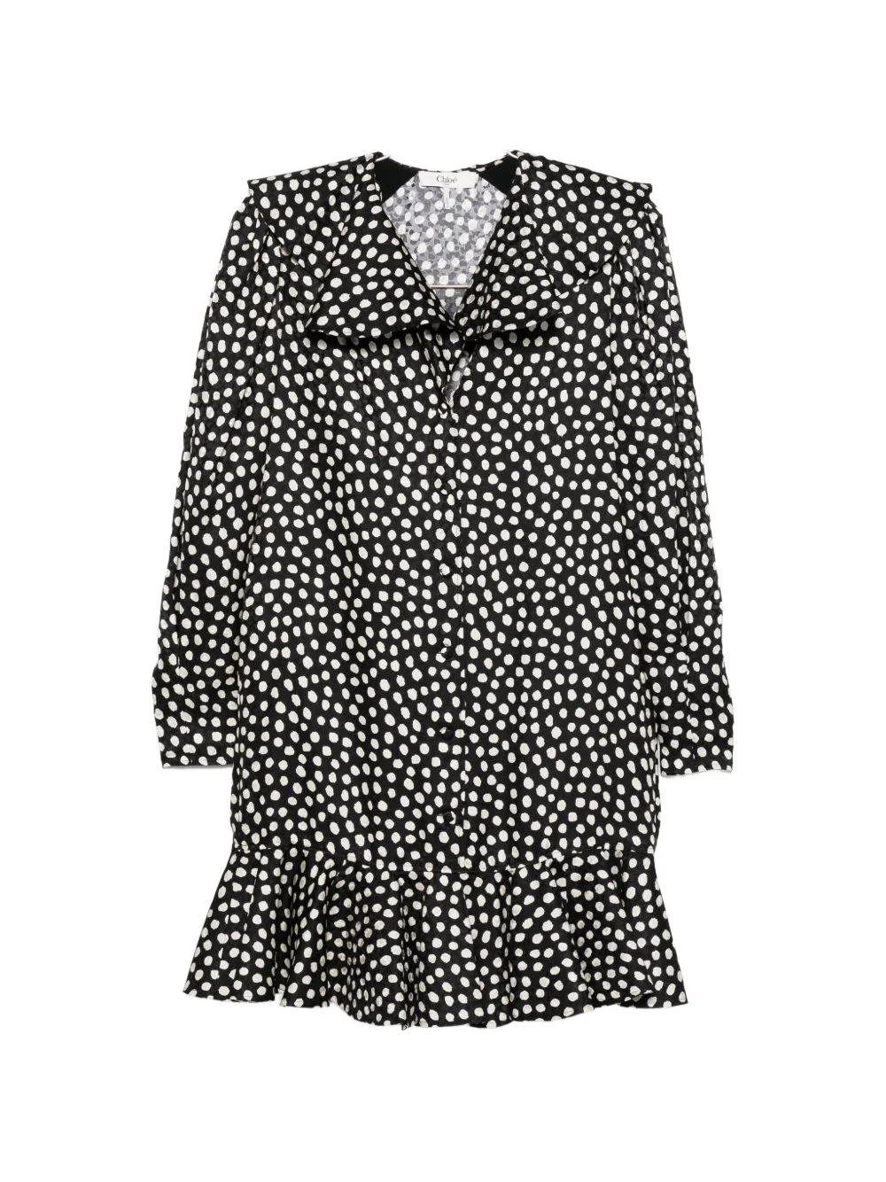 polka dot-pattern dress Highlights - Black - Polka dot pattern - Ruffled hem - V-neck - Long sleeves Made in Italy Composition Outer: Silk 100% Lining: Acetate 76%, Silk 24% Washing instructions Dry Clean Only