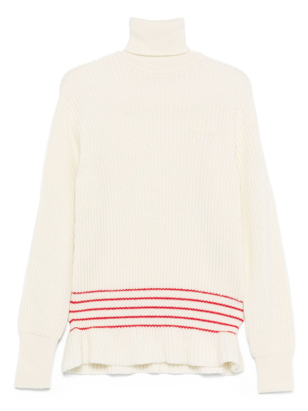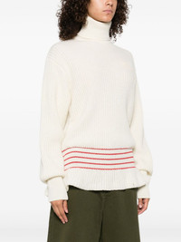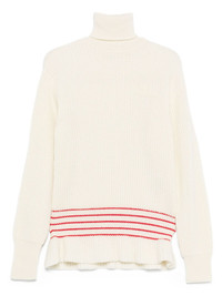 ribbed turtleneck stripe-detail sweater Highlights - Off-white - Ribbed knit - Turtleneck - Long sleeves - Stripe detail Made in Italy Composition Mohair 25% SIZE & FIT Model measurements Height 5 ft 10 in(1.79 m) Bust/Chest 31.88 in(81 cm) Hips 35.43 in(90 cm) Waist 23.62 in(60 cm) Washing instructions Dry Clean Only