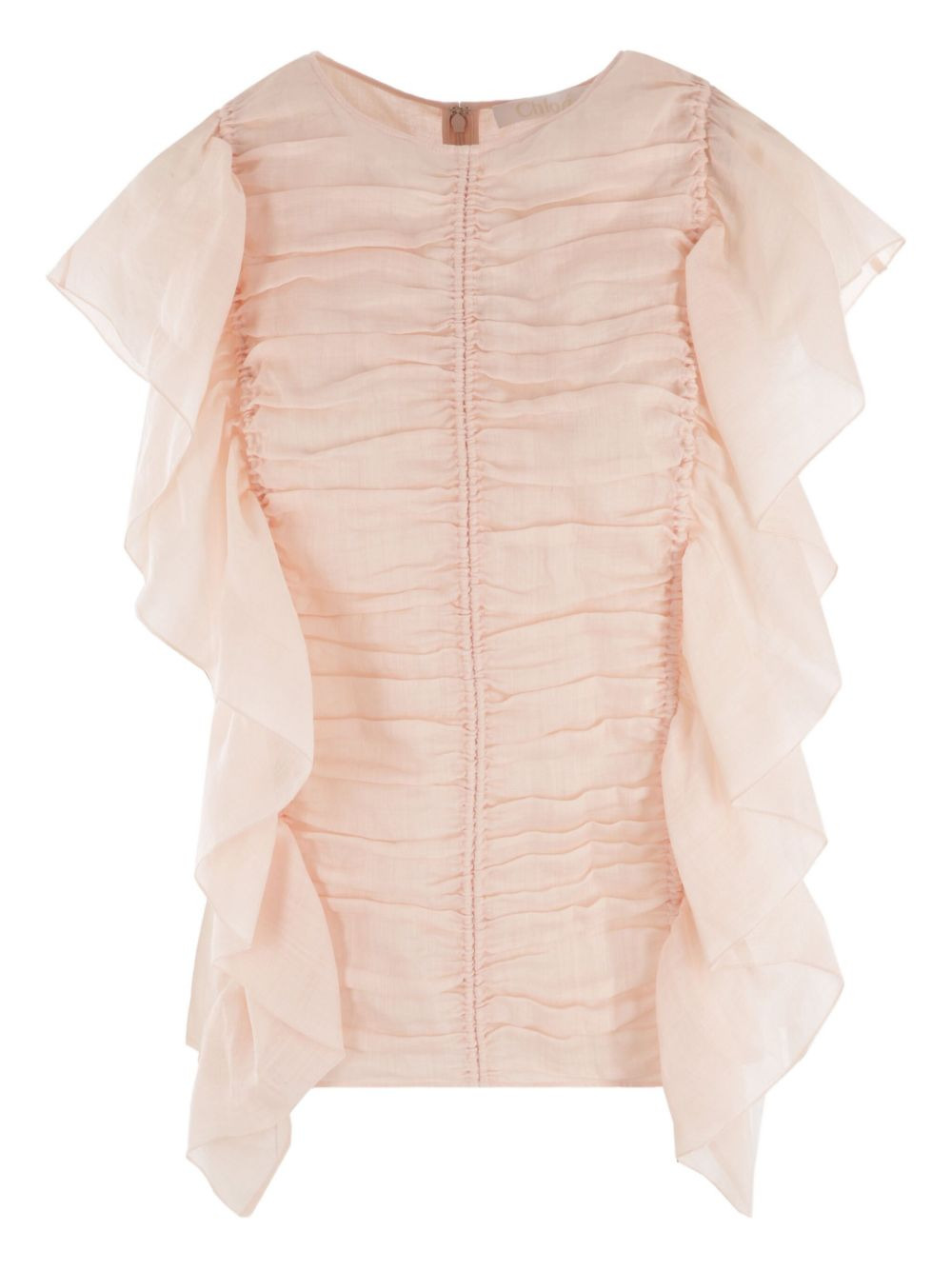 ruffle-trim ramie top Highlights - Blush beige - Ramie - Muslin - Ruched detailing - Ruffled trim - Round neck - Concealed rear zip fastening - Sleeveless - Straight hem Made in Italy Composition Ramie 100% Washing instructions Read Manufacturer Guidelines