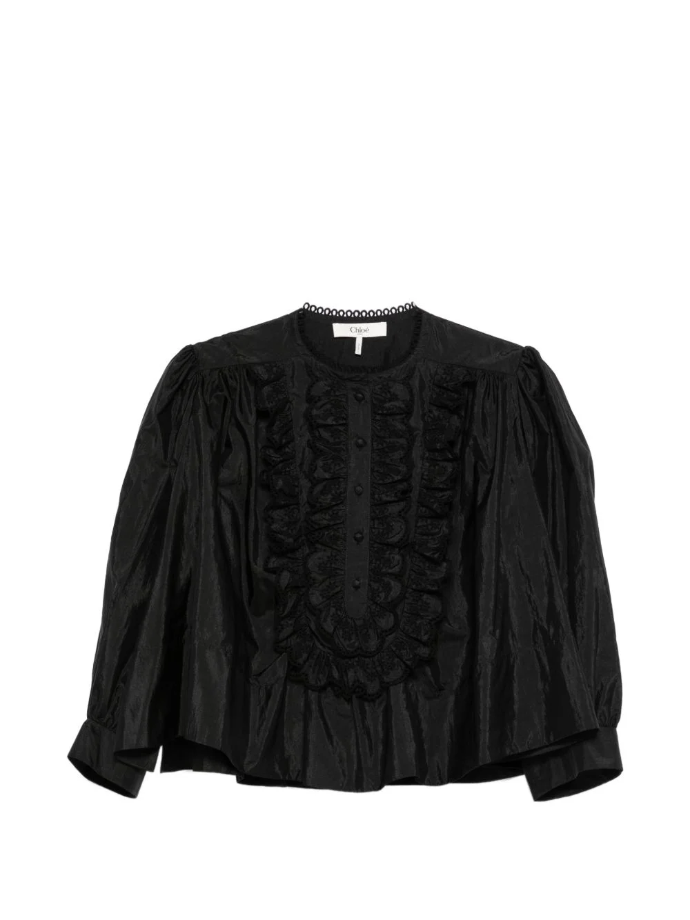 ruffled bib blouse Highlights - Black - Ruffle detail - Button fastening - Long sleeves - Round neck Made in Italy Composition Cotton 80%, Polyamide 65%, Silk 35%, Polyester 20% Washing instructions Dry Clean Only