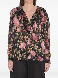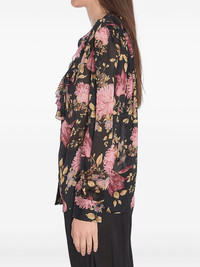ruffled blouse Highlights - Black - Front button fastening - V-neck - Long puff sleeves - Floral print Imported Composition Silk 100%