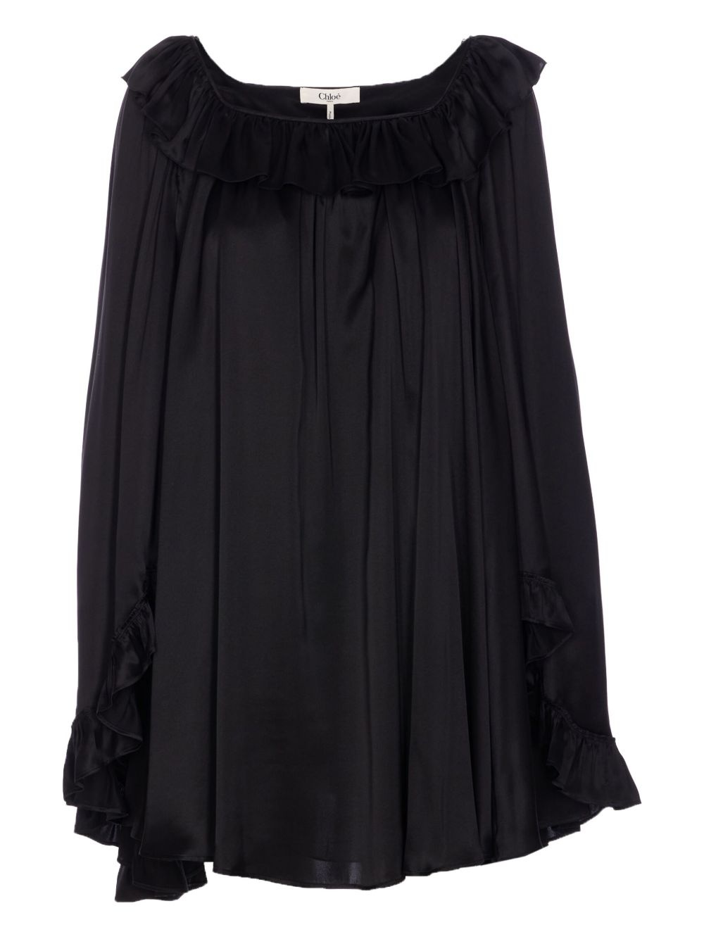 ruffled long-sleeves dress Highlights - Black - Ruffled neckline - Long sleeves - Ruffled sleeve cuffs Imported Composition Lining: Acetate 68%, Silk 32% Outer: Silk 100%