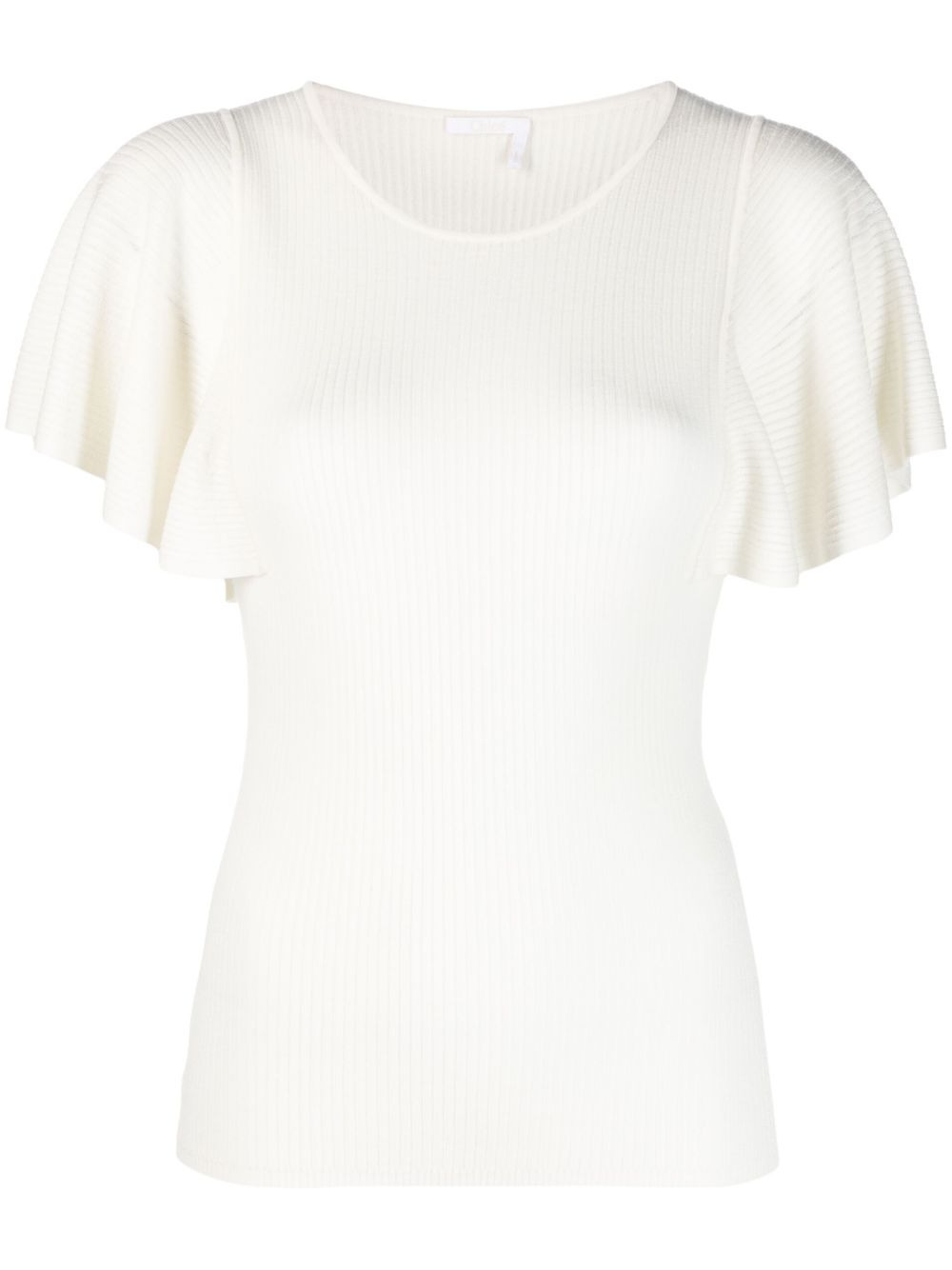 ruffled-sleeves knitted top Highlights - Cream white - Wool - Knitted construction - Ruffled detailing - Round neck - Short sleeves - Straight hem Made in Italy Composition Wool 100% SIZE & FIT Model measurements Height 5 ft 10 in(1.79 m) Bust/Chest 31.49 in(80 cm) Hips 35.03 in(89 cm) Waist 23.62 in(60 cm) FittingInformation Designed for a slim fit that sits just away from the body offering a close yet comfortable fit Made with a lightweight knit, this piece offers some stretch This piece fits true to size – take your usual size Washing instructions Dry Clean Only