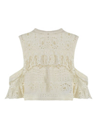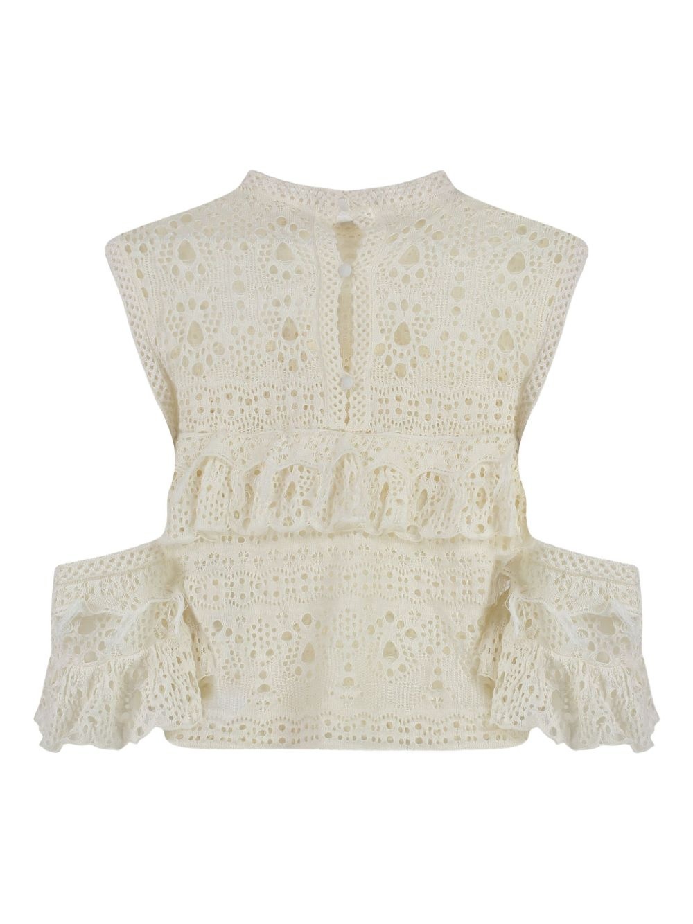 ruffled top Highlights - Cream - Ruffle trim - Button keyhole closure - Open shoulder design Made in Italy Composition Linen/Flax 75%, Cashmere 18%, Silk 7%