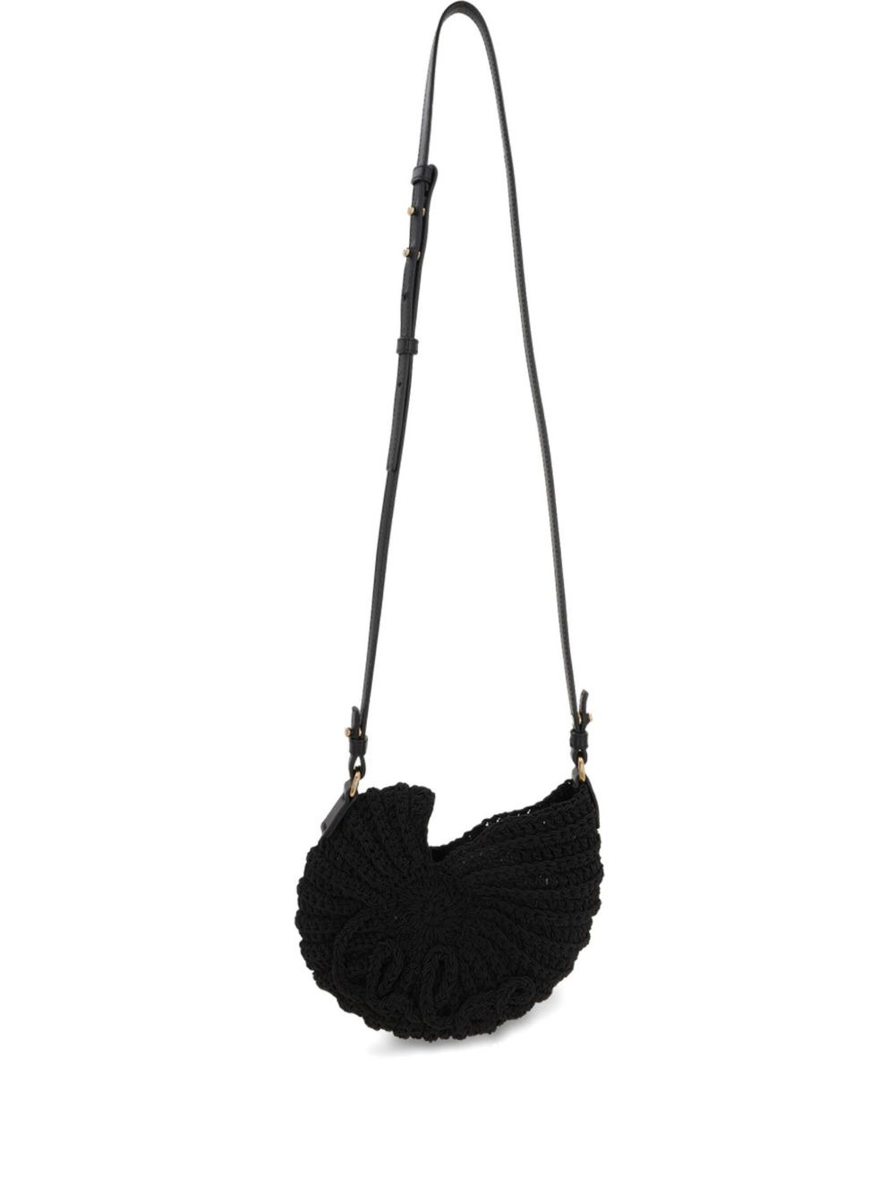 Sea Treasures leather-trimmed crocheted cord shoulder bag Black