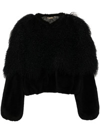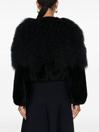 shearling-trim jacket Highlights - Navy blue - Shearling trim - Round neck - Long sleeves - Two side inset pockets - Straight hem - Full lining - Front hook and eye fastening Made in Italy Composition Lining: Polyester 100%, Viscose 62%, Cotton 38% Outer: Lamb Fur 100% SIZE & FIT Model measurements Height 5 ft 10 in(1.78 m) Bust/Chest 32.67 in(83 cm) Hips 35.43 in(90 cm) Waist 23.22 in(59 cm) Measurement SLEEVE LENGTH 24.4 in(62 cm) LENGTH 19.29 in(49 cm) WAIST 33.85 in(86 cm) FittingInformation Designed to be unstructured, offering a loose fit throughout The elasticated hem allows for movement and a comfortable fit Made from a midweight non-stretch fabric This piece fits true to size – take your usual size