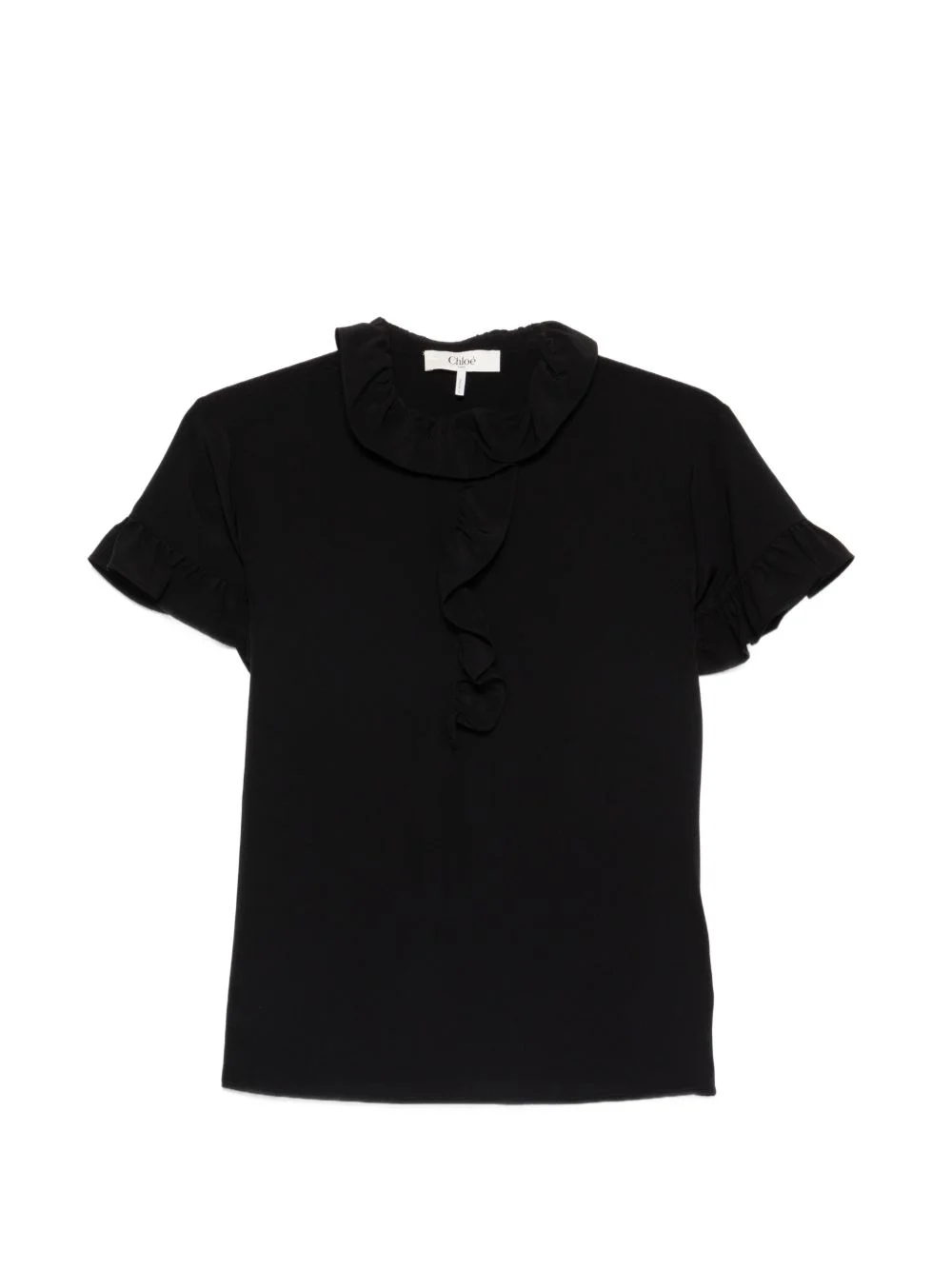 SHORT-SLEEVE RUFFLE TOP IN CRÊPE DE CHINE