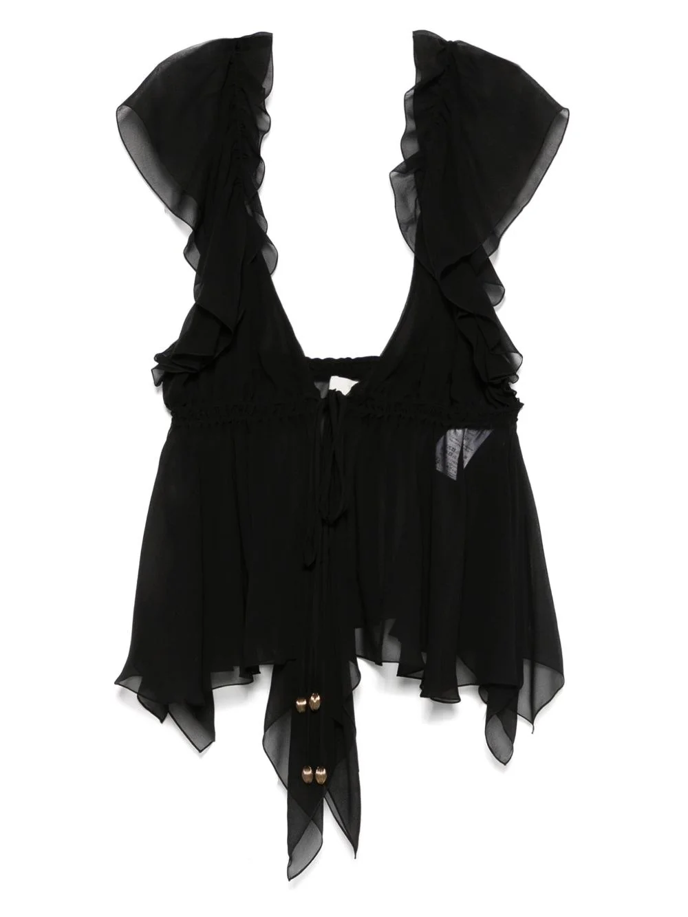 silk blouse Highlights - Black - V-neck - Short sleeves - Open back Imported Composition Silk 100% Washing instructions Dry Clean Only